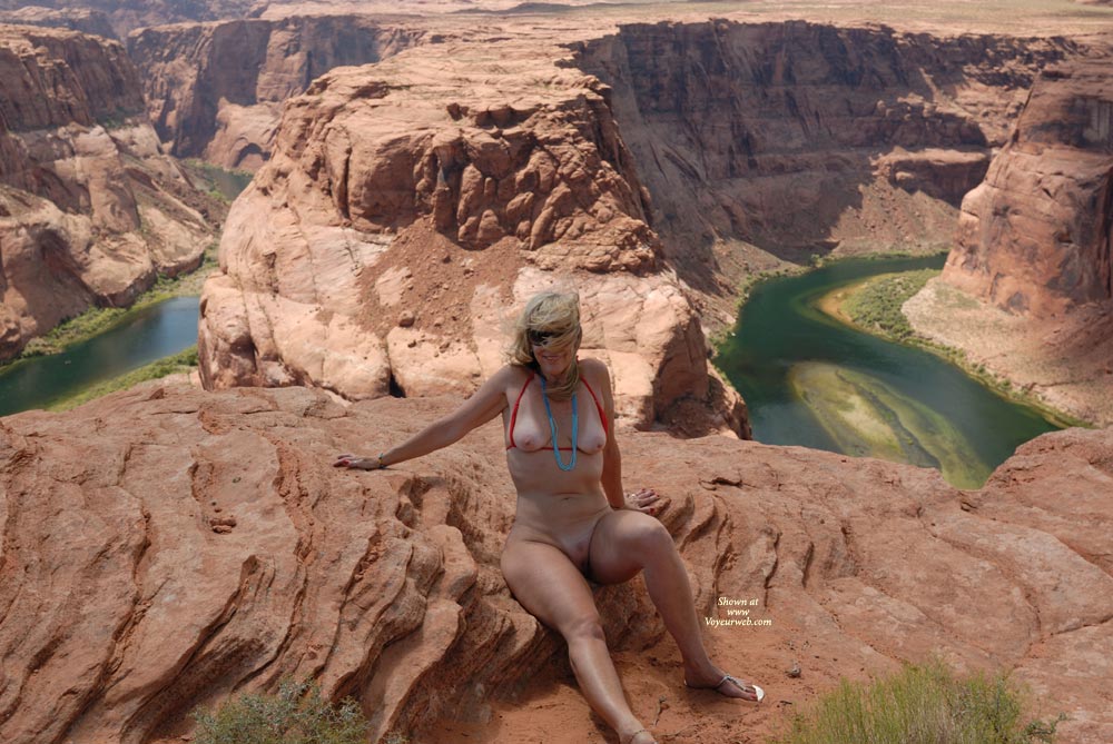 Hi Kate, the crew and all you voyeurwebbers,Our morning started at Lake Powell and the Dam. We wanted to rent a boat but after standing in line we found they were all rented. Boris had heard of a place called Horseshoe Bend along the Colorado River that was near where we were. He said he didn't know if we would be able to get any pics because there's always tourists there. It was a short hike and one of the most awesome views we've ever seen. Luckily we were able to get a few shots of our grand adventure. Just goes to show some of the best things in life are free! Hope you enjoy the photos. Thanks for all the great comments on my last contri. I appreciated them all. Please let me know what you thought of this set. I'd love to hear from you. Luv, Natasha xoxo