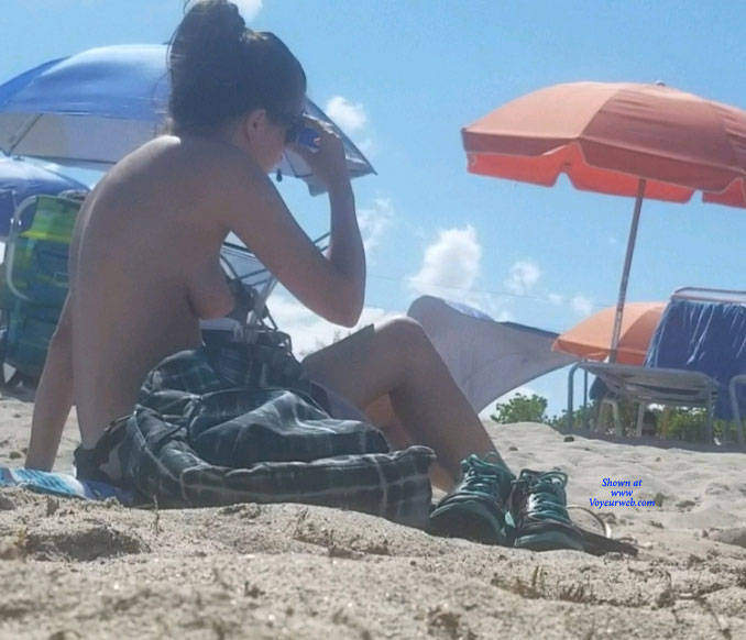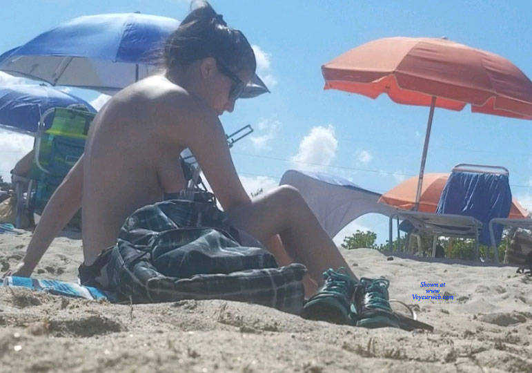 Topless Girls Beach Brunette Outdoors Beach Voyeur
