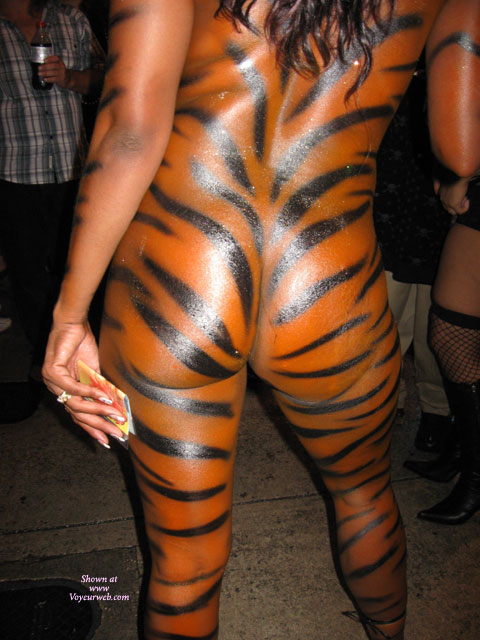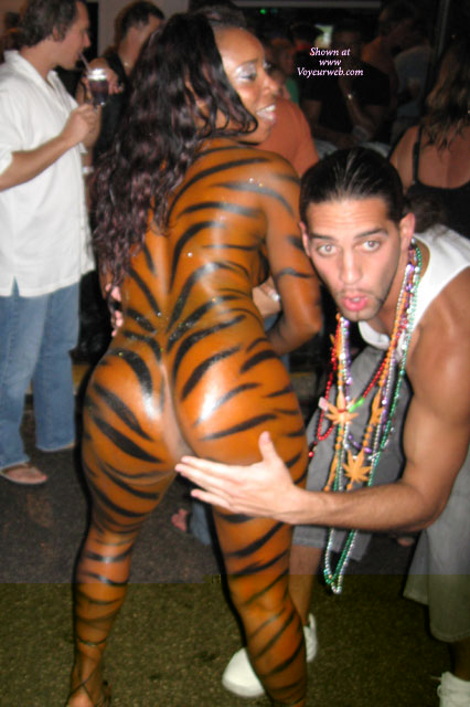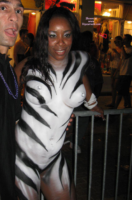 I spent a few days on Key West during Fantasy Fest, and kept running into this girl with one fabulous booty! She was always attracting a crowd with her booty shaking antics, and was therefore tough to photograph. I got some pretty good photos, but a video camera would have done the most justice to this magnificent creature. Hope one of the video boys got some good shots!